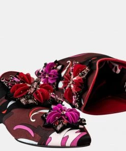 True to the signature free-spirited style of Emilio Pucci, these eye-catching slippers will add a cheerful note to your look. Fashioned in luxurious satin, these chic mules feature a vibrant floral pattern print decorated with sequins. Defined by pointed toes, these flat mules are boldly unique and utterly comfortable.