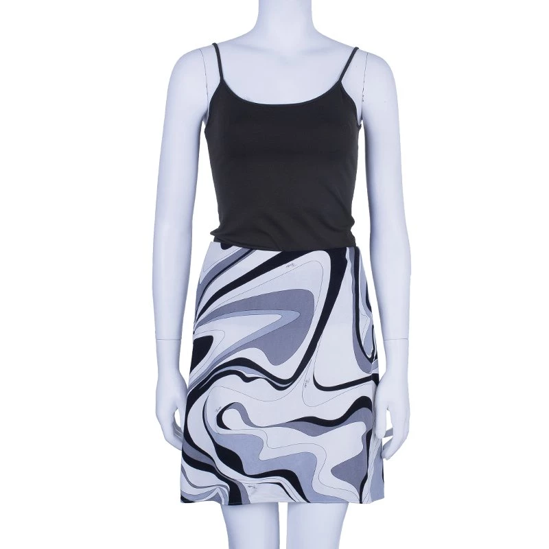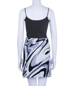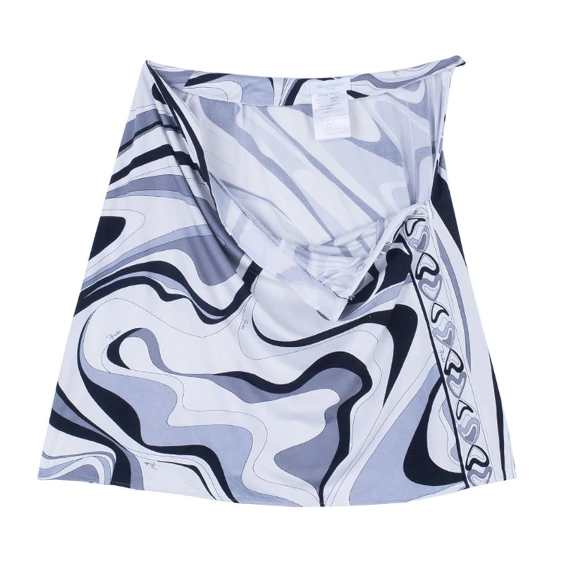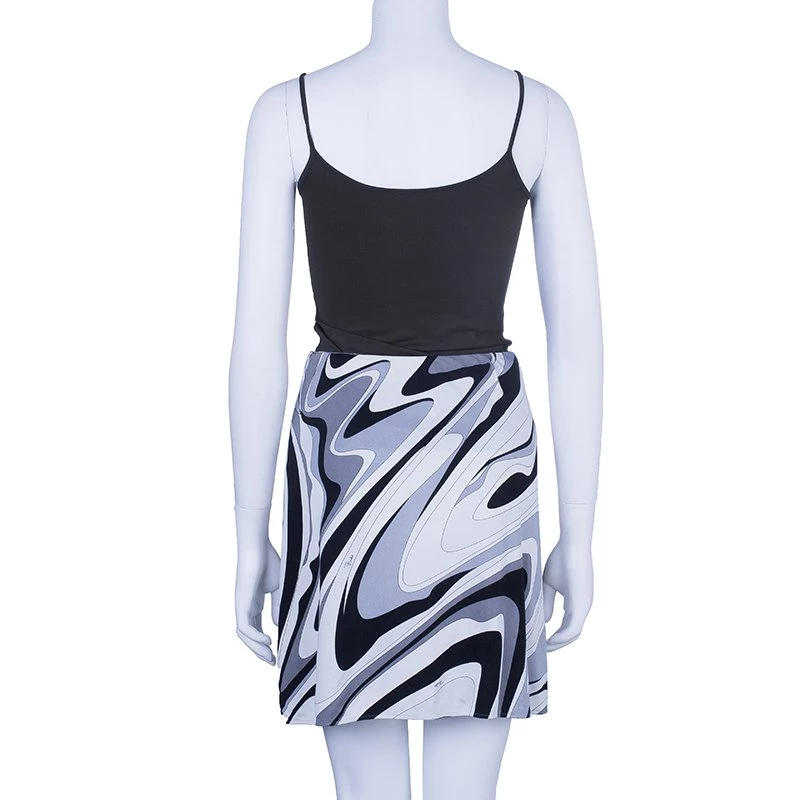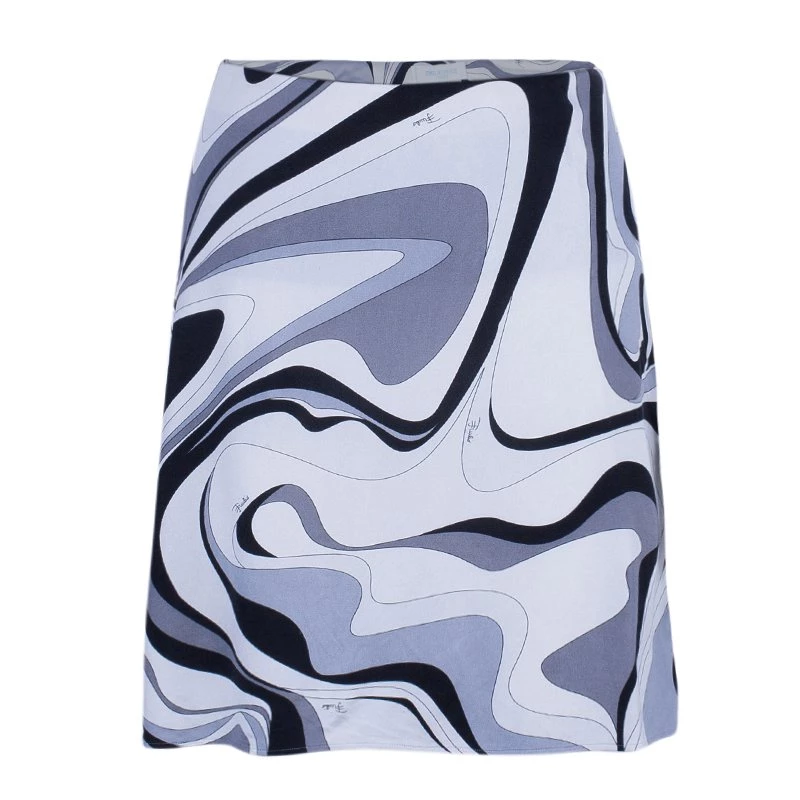 This Emilio Pucci skirt will be your favorite piece of apparel that projects class and comfort. Reflecting the classic printed designs of Pucci, its multicolored print in black, white and grey shades makes it ideal to be paired with plain tops. Made from silk, the skirt features a side zip closure highlighted with a different print.