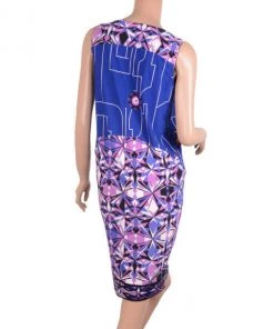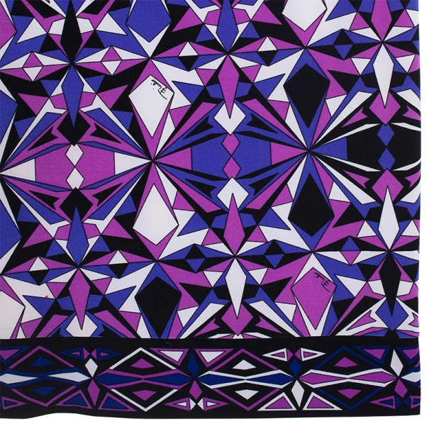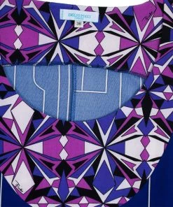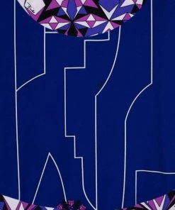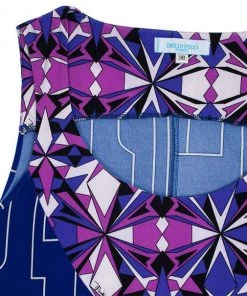 Be the talk of the party when you wear this Emilio Pucci Printed Jersey Dress. It has an abstract bold prints in purple, blue and white hues. This sleeveless dress has a round neckline.