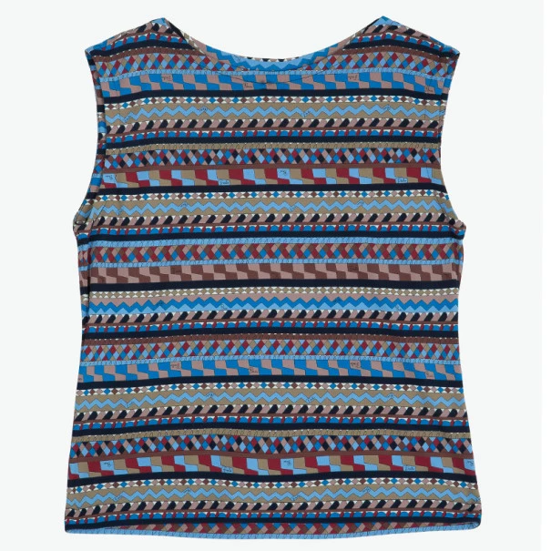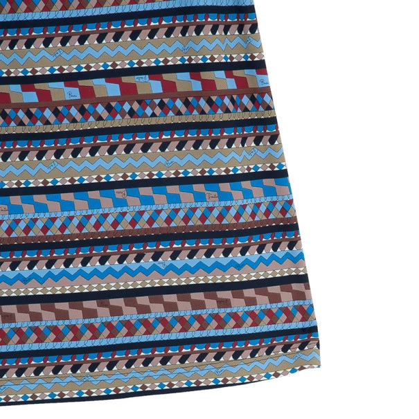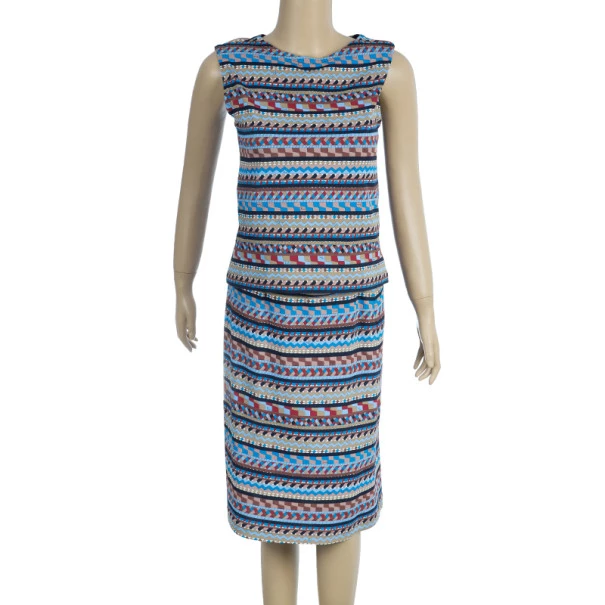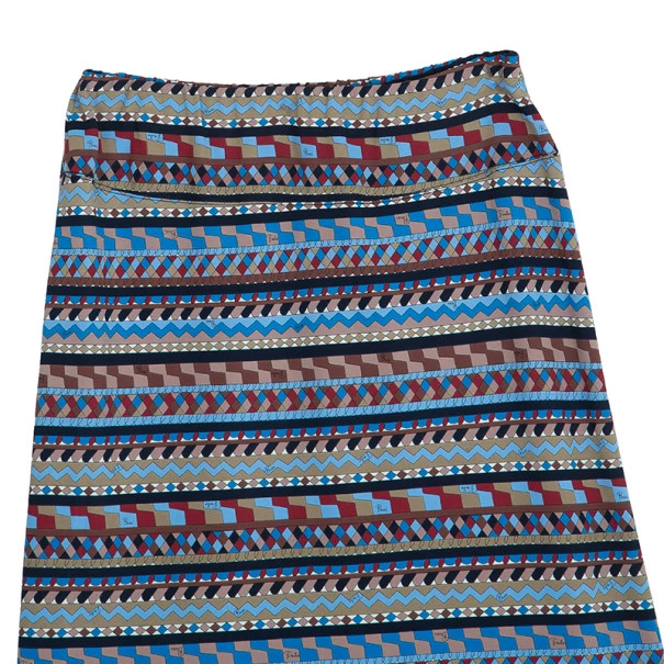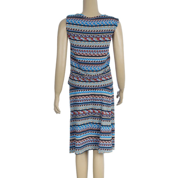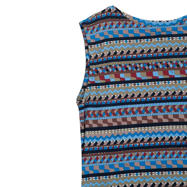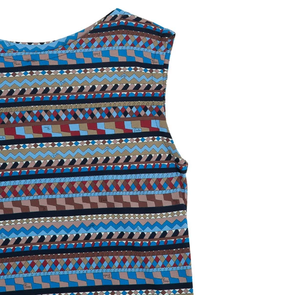 This Emilio Pucci Printed Set is colorful and unique. It features a sleeveless top with a round neckline and a matching skirt. Its skirt has an elasticated waist and carries similar prints to the top, with multiple multicolored patterns.Original Retail Price: US $1,155