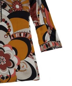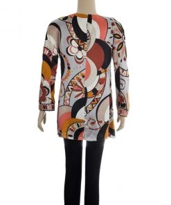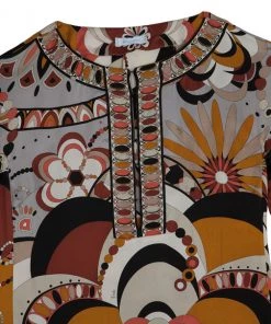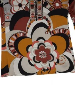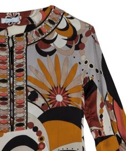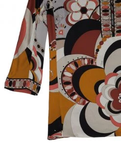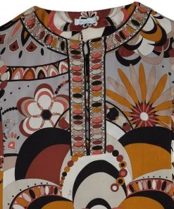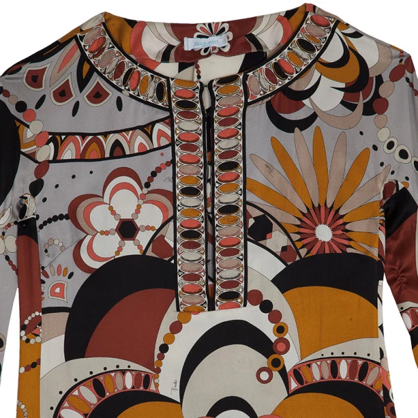 This Emillio Pucci Printed Silk Top is calm and colorful! Crafted from 100% silk, this top features a round embellished collar, button closure on its front with embellished detailing, colorful floral prints and long sleeves.