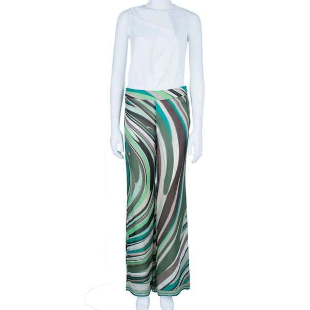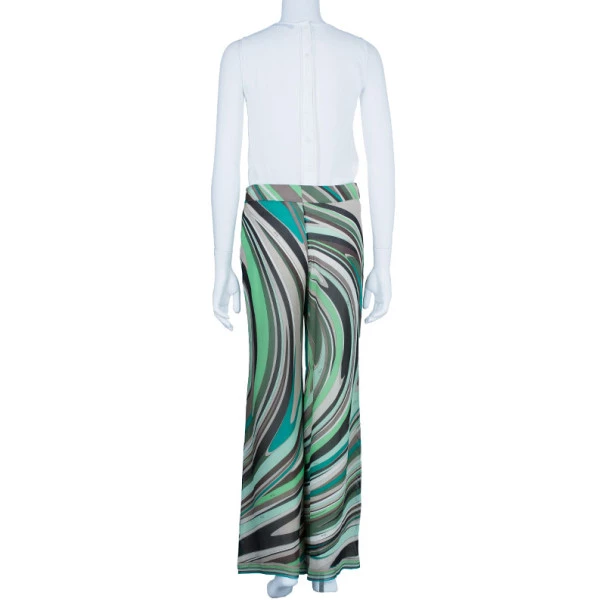 Get a funky 70’s look with these super cool Emilio Pucci printed silk wide leg pants. Crafted from 100% silk, they are very lightweight and soft, therefore perfect for the summer season! They feature a side zip closure, multicolor print and a wide leg.