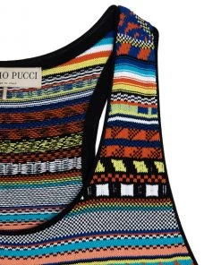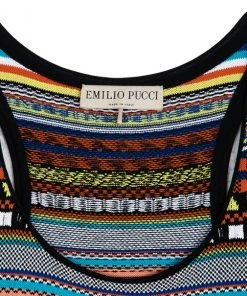 Wear this fun Emilio Pucci top on a hot summer day for a breezy and light look. Its multicolored stripes are designed with different prints, making it perfect with any pair of pants and a cute purse!Original Retail Price: US $750