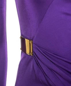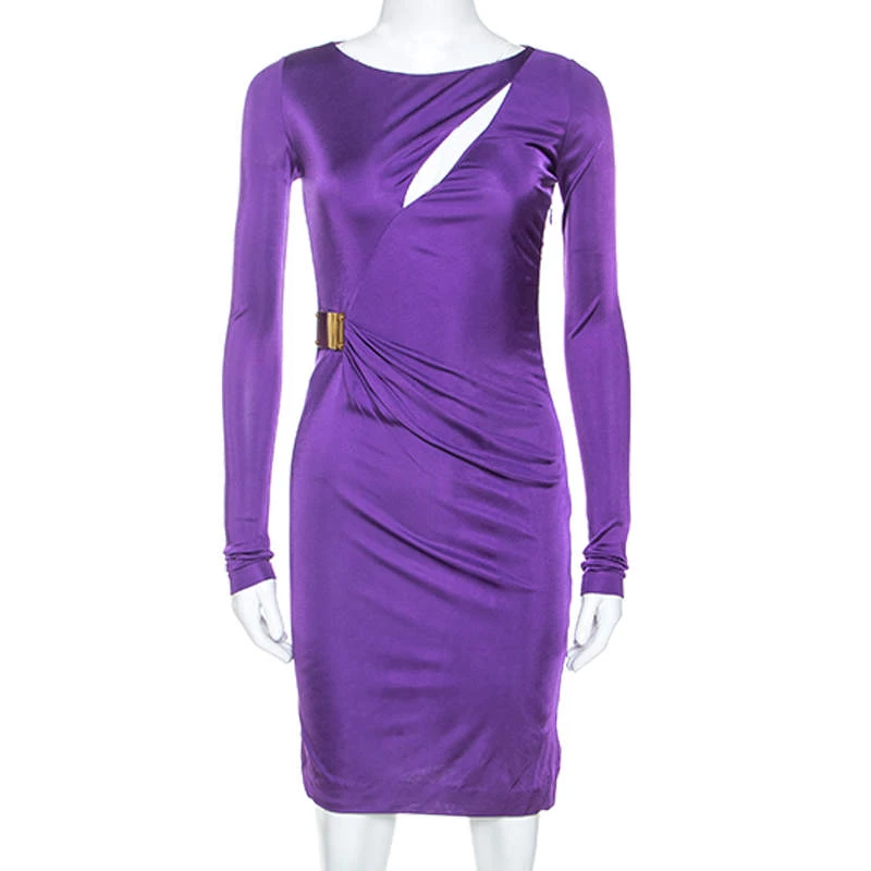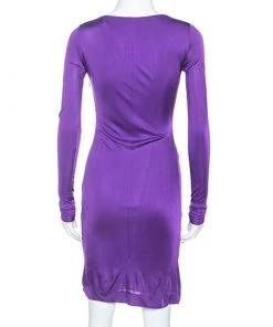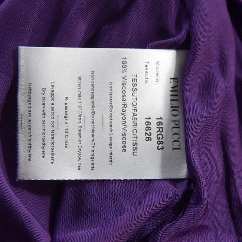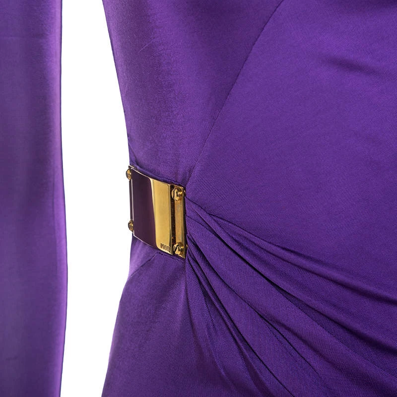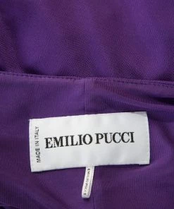 This purple Emilio Pucci dress has a well-tailored shape and a simple design that entails ruched accents on the waist. Made to fit you splendidly, this elegant piece can be paired with any shoes of your choice.
