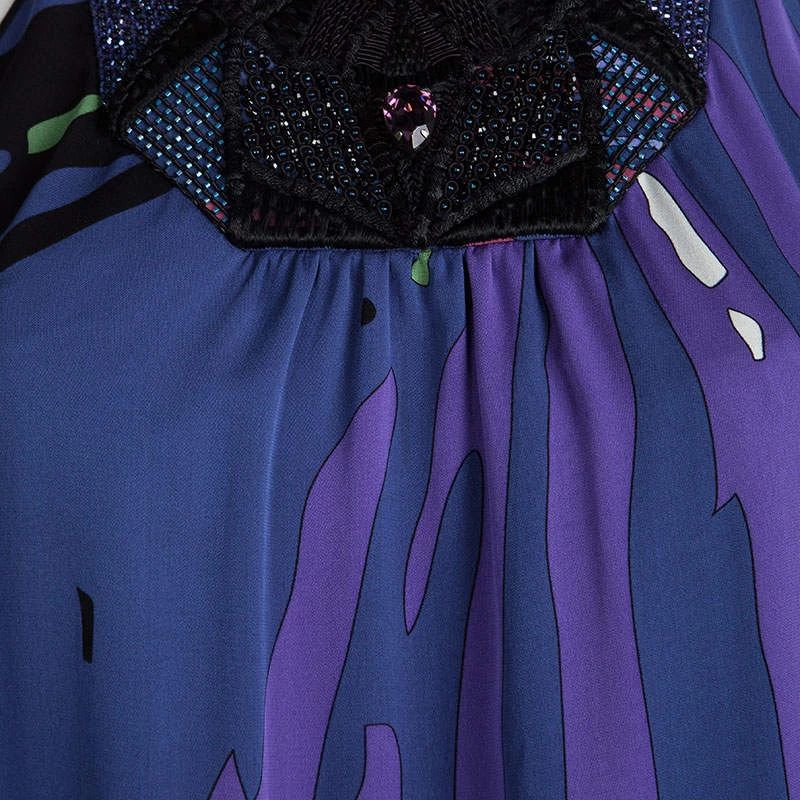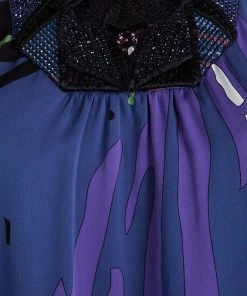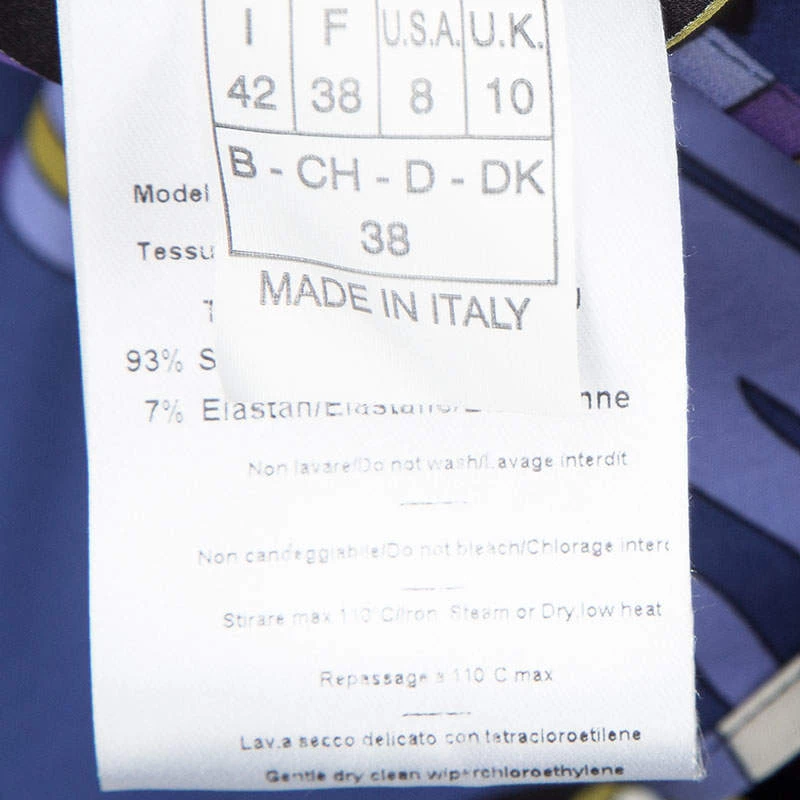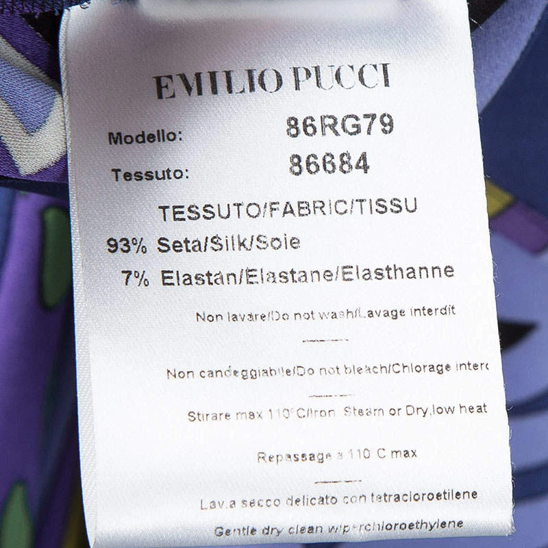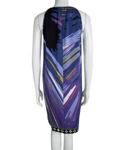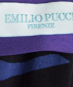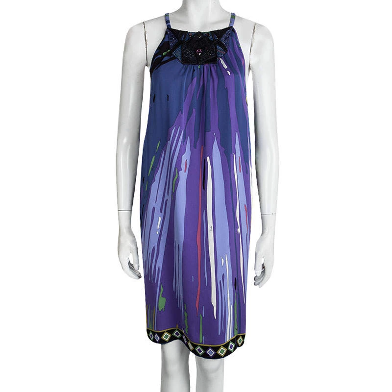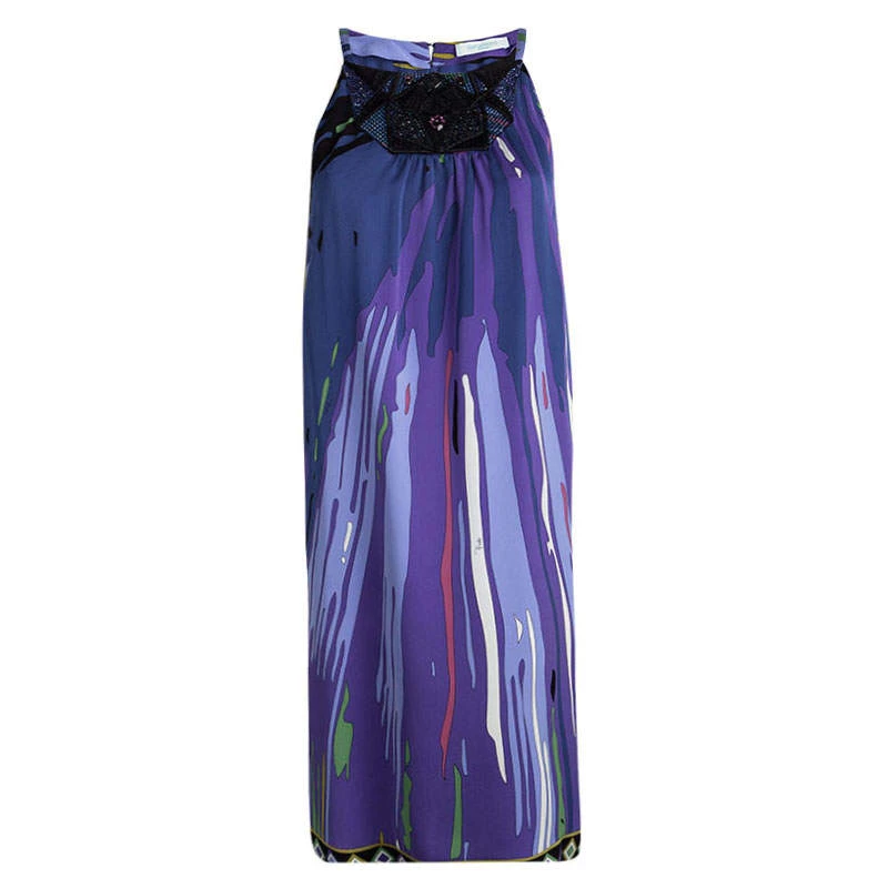 Sashay out like a diva in this Emilio Pucci dress that was created in Italy from silk and elastane. Designed with a halter neck over a gorgeous printed exterior, this purple dress is complete with stunning embellishments on the neck. Assemble the complete look with statement jewelry and strappy sandals.