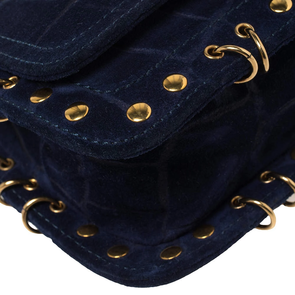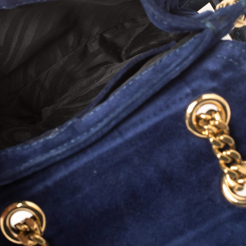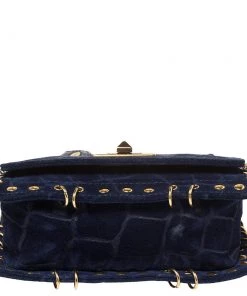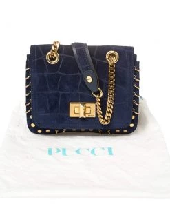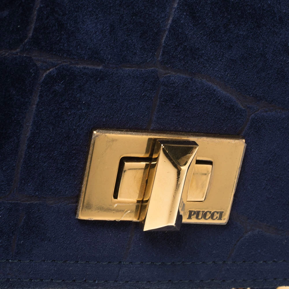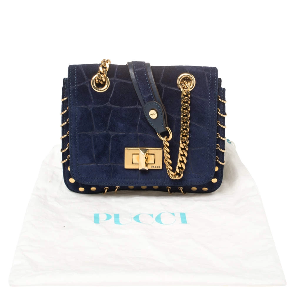 This uber-chic Marquise shoulder bag from Emilio Pucci will be a valuable addition to your collection. Crafted from suede, the bag features a textured exterior, a chain strap with leather shoulder rest, and gold-tone studs and ring detailing on the contours. The turn-lock closure opens to a nylon-lined interior that will fit all your party essentials.