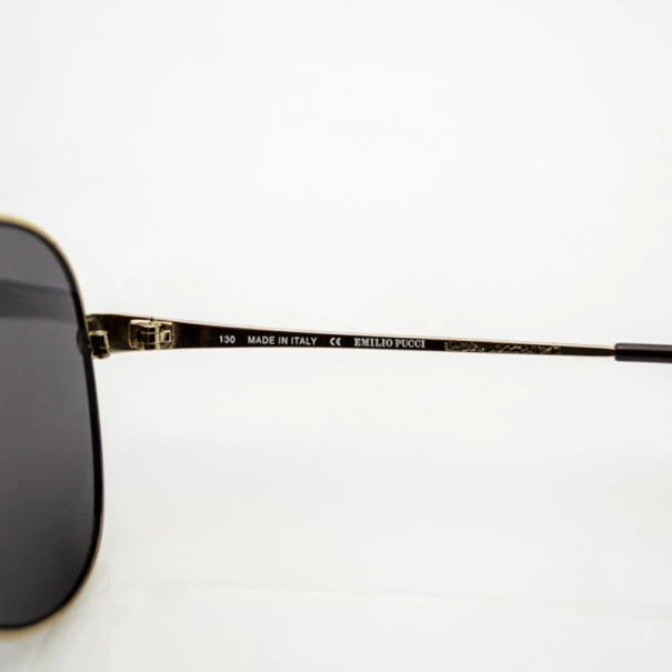 The iconic Italian brand Emilio Pucci brings you these Shiny Gold EP131S Sunglasses to brighten up your days! They are crafted from gold gunmetal and feature the Emilio Pucci logos at the contrasting printed plastic temples. They include adjustable nose pads and wire core adjustable plastic temple tips. These trendy shades offer 100% UV protection. Original Retail Price: US $534Condition: NewMaterial: Metal, PlasticHardware: Gold-toneIncludes: The Luxury Closet Box