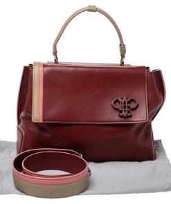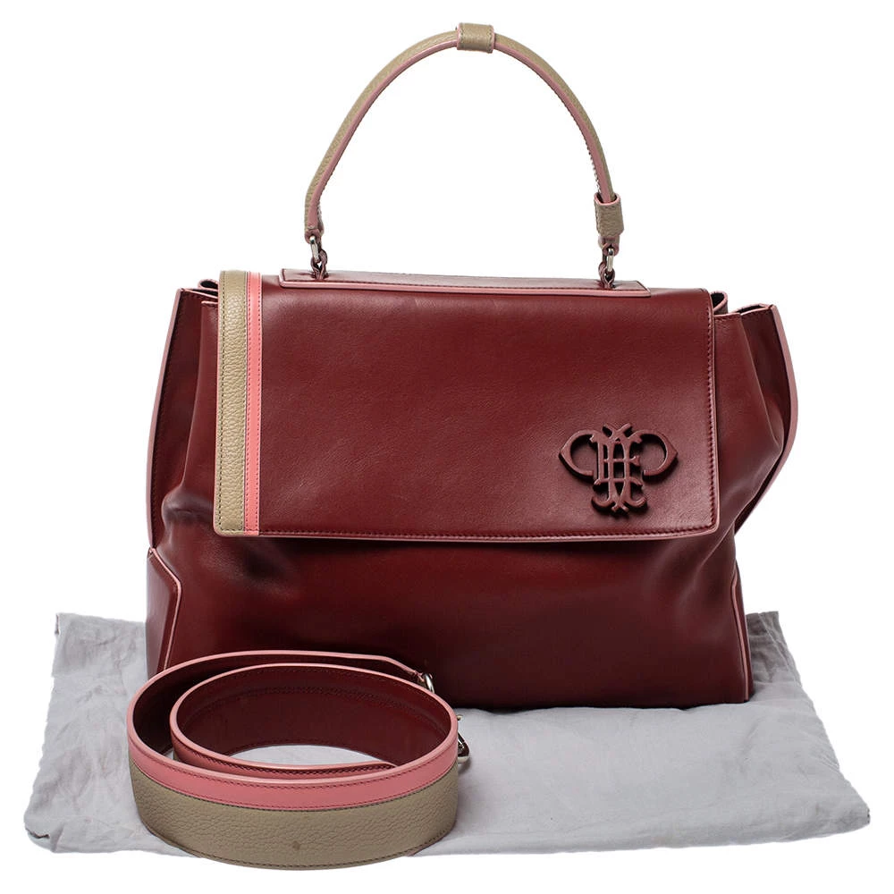 The iconic Pilot bag by Emilio Pucci features a front flap with contrasting color-block trims. It includes a top handle, magnetic closure, detachable shoulder strap, and the label’s accent on the front. Made from fine leather, the creation comes with a spacious Alcantara interior.