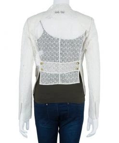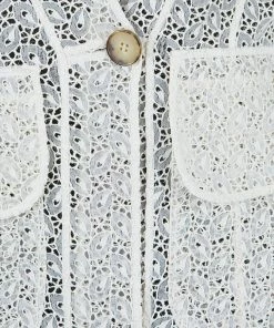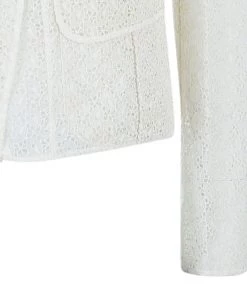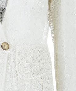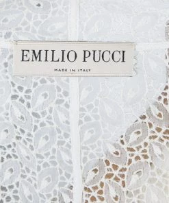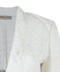 This stunningly feminine and chic jacket from Emilio Pucci will add a touch of elegance to your style. It features perforated eyelet pattern in white, a button closure and two front flap pockets.