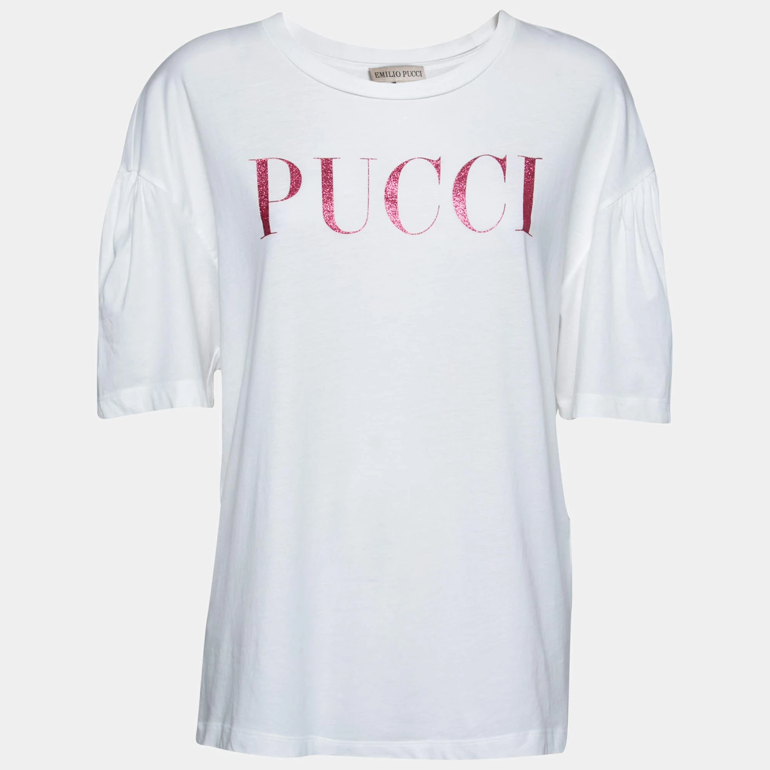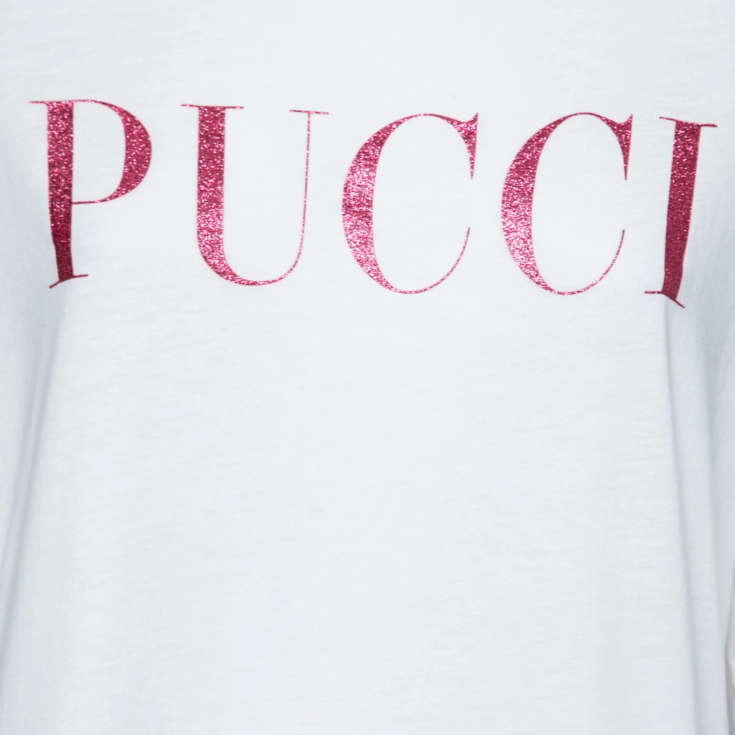Set on a relaxed fit, this Emilio Pucci top is an ideal casual day choice. It is tailored from cotton and is easily recognizable with the brand signature on the front. Short sleeves and a fine neckline complete the creation.