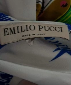 Effortless comfort, immense style, and vivid prints define this Emilio Pucci top. Made using soft fabric, it can be tucked inside blue high-waisted trousers and complemented with matching pumps.