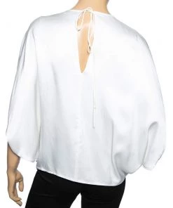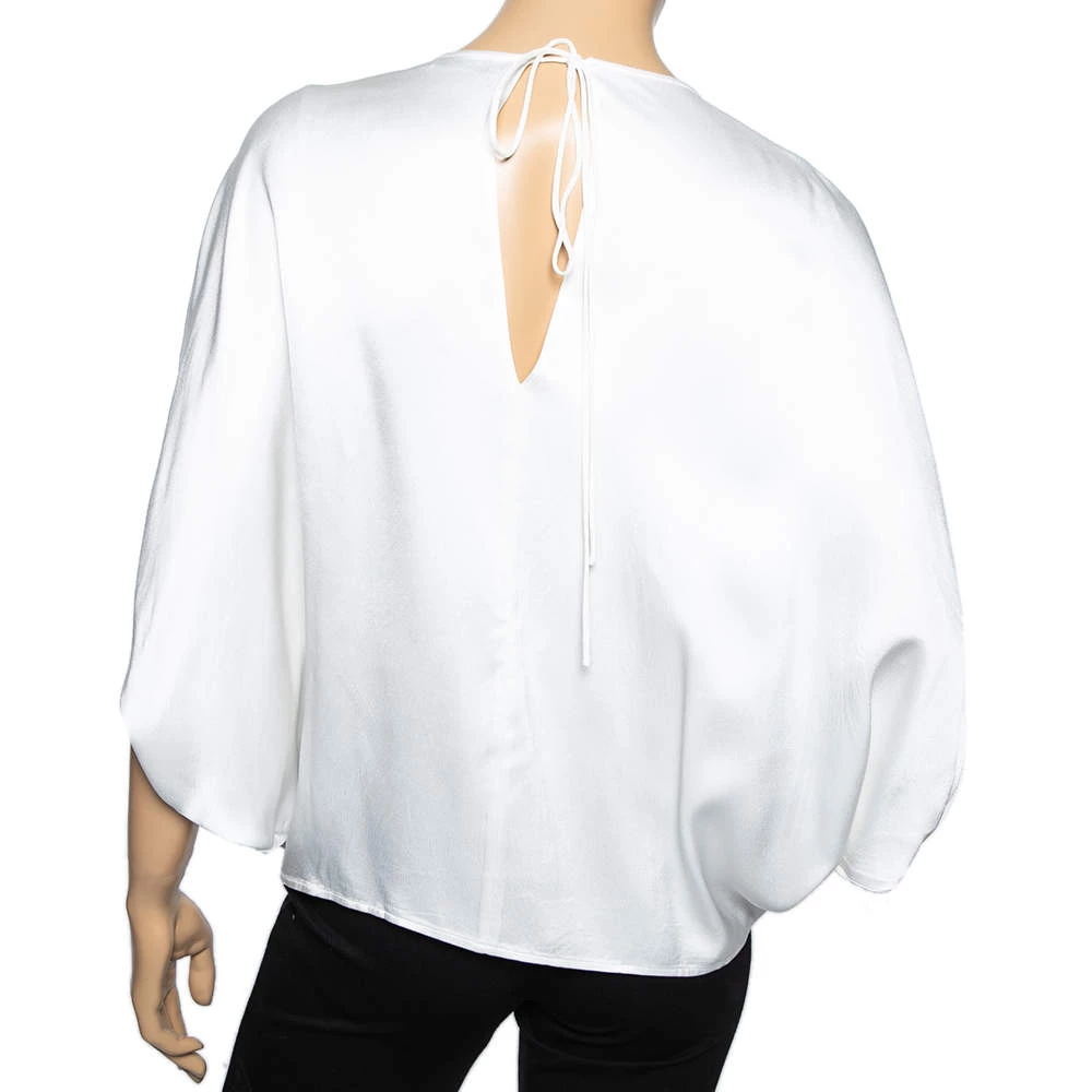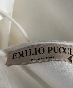 This Emilio Pucci kaftan top strikes the right balance of luxury and comfort. It is made from white sateen fabric and has a simple design with a tie-back detail. For a sophisticated outfit, pair it with jeans and high heels.