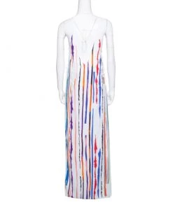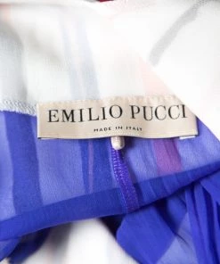 Feel and look elegant in this dress by Emilio Pucci. Designed with pleats and stripes of colours, the dress also brings tie details on the side and at the back. A pair of flat sandals will look perfect with this creation.