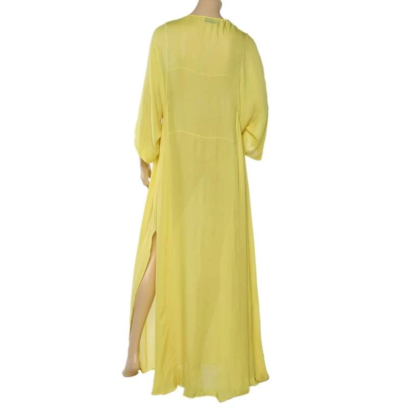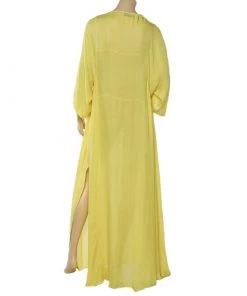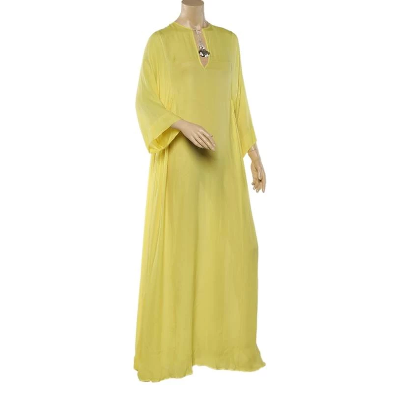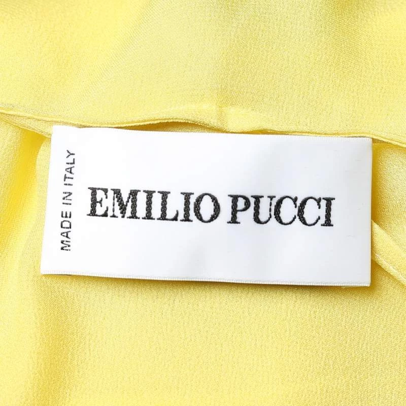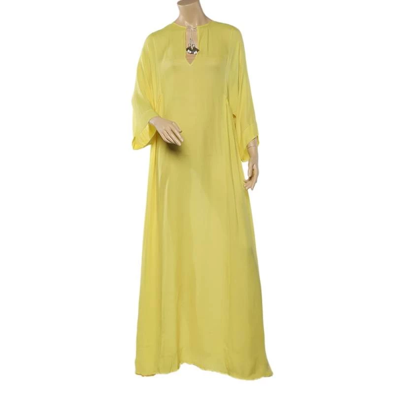This kaftan maxi dress from Emilio Pucci is vibrant and gorgeous! It is tailored from quality silk and designed with wide sleeves, a tie to the neckline, and a slit to the side.